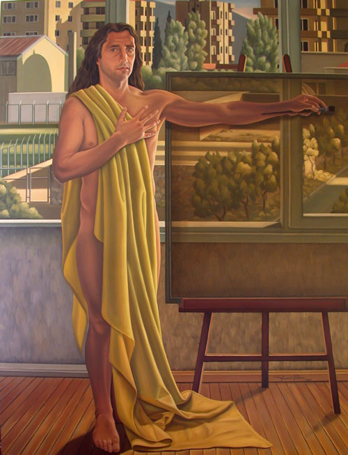 Resimde izleyene bakarken izlenen Hamdi,Hamdi’nin takendisidir.Hem fotoğrafik anlamda(ki bu onun detaycı fırçasının karakteristiğidir),hem de duygu anlamında.Ben Hamdi’nin sergisi için”Hamdim,piştum,yandim..’’yakıştırmasını kullanmıştım,gülüştük beraber.Burada Hamdi’nin olgun ve sırıtmayan ifadesini onu tanımayanlar da okuyabilir.