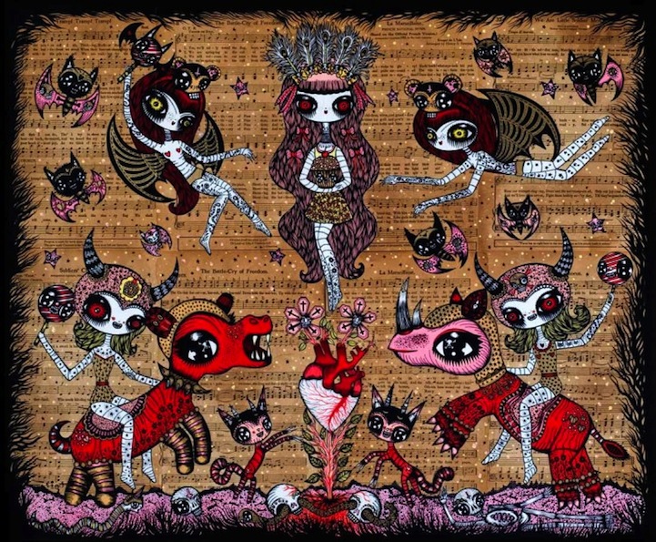 Yeni çalışmalarındaki floresan renkler ve siyah hakimiyeti, yarattığı dünya içindeki kimlikleri daha farklı, ürpertici yaparken, kompozisyonlardaki cezbedici karanlık, arkadaşlık ve tehlikeli dünya göze çarpıyor.