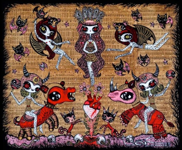 30’lardan 70’lere Amerikan Vintage kültüründen, geleneksel ve çağdaş Japon sanatına kadar geniş bir çıkış noktasından beslenen sanatçı, yeni biçimlendirmeler ve güçlü bir renk dili ile kusursuz bir teknik sergiliyor.