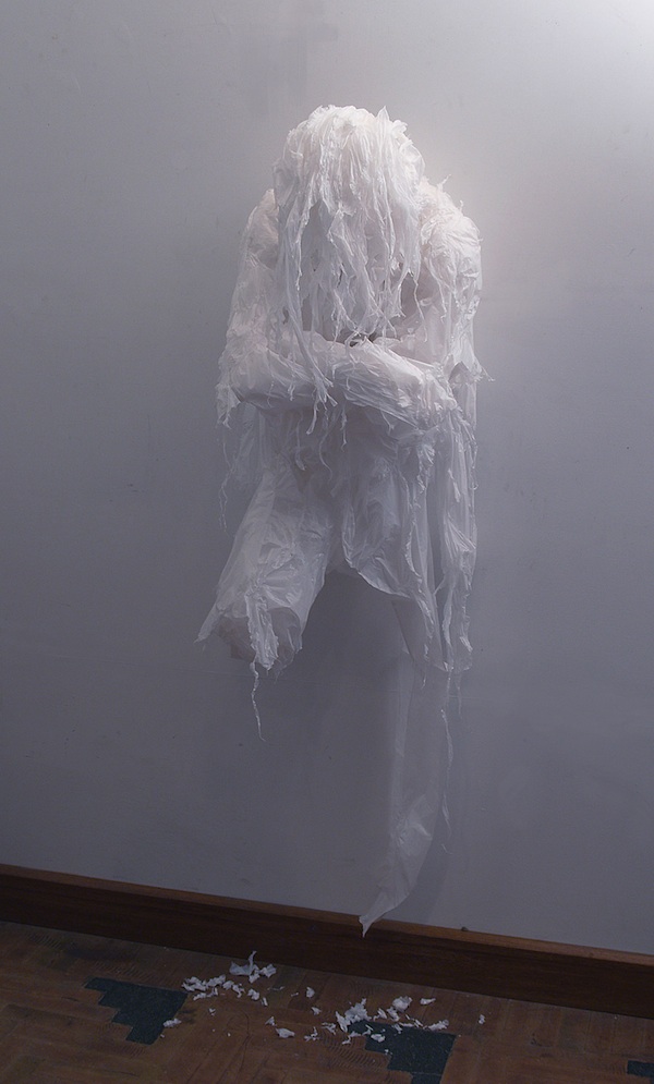 Değişime uğrayan kimliklerimize çöp torbalarından gönderme; gerçek boyutlu figürler, Pakistanlı sanatçı Khalil Chishtee çalışması.