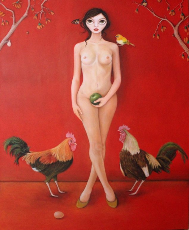 Figürlerin iri gözlerindeki hüzün , bedendeki fotografik yaklaşım ile çelişkili. Bedeni ile alıkoyduğu ” seni”, gözleri ile ağlatmaya hazır.