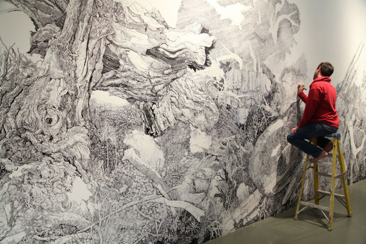 Rus sanatçının desenleri kağıt üzerinde var olurken, Sullivian günümüz malzemeleri ile duvar resmine dönüştürdüğü projelerle sergi yapıyor.