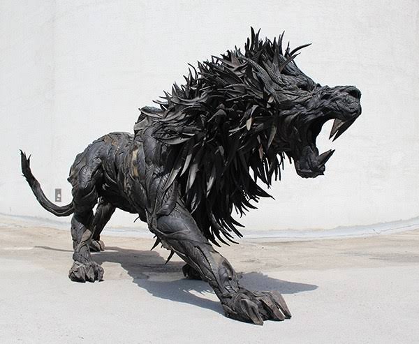 Yong Ho Ji , Koreli Heykelci Araç Lastikleri ile çalışıyor.